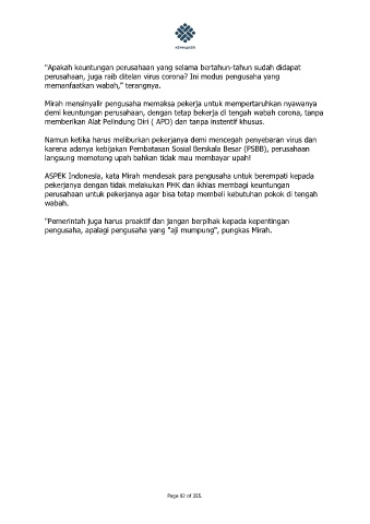 demi keuntungan perusahaan, dengan tetap bekerja di tengah wabah corona, tanpa