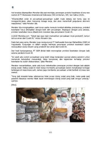Dari hasil kunjungannya, PT SGM dinilai telah menerapkan protokol kesehatan dengan baik