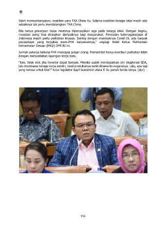Saleh mempertanyakan, keahlian para TKA China itu. Selama keahlian tenaga lokal masih ada