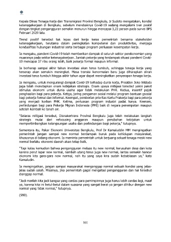 ketenagakerjaan di Bengkulu, sebelum merebaknya Covid-19 sedang mengalami tren positif
