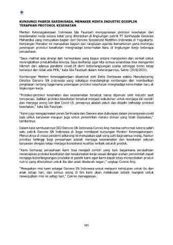 satu pabrik Danone SN Indonesia di Jogja mendapat kunjungan Menteri Ketenagakerjaan.