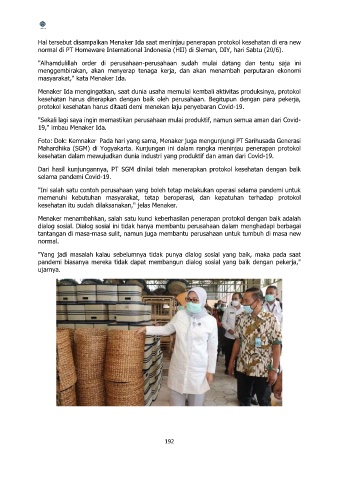 Menaker Ida mengingatkan, saat dunia usaha memulai kembali aktivitas produksinya, protokol
