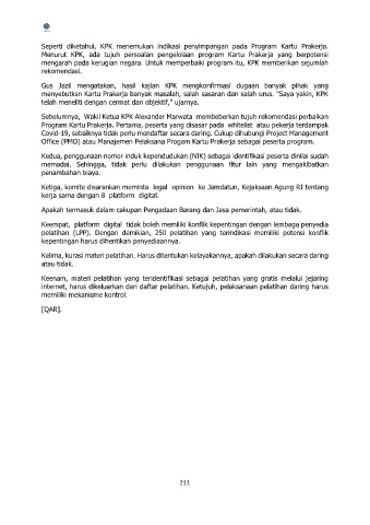 Seperti diketahui, KPK menemukan indikasi penyimpangan pada Program Kartu Prakerja.