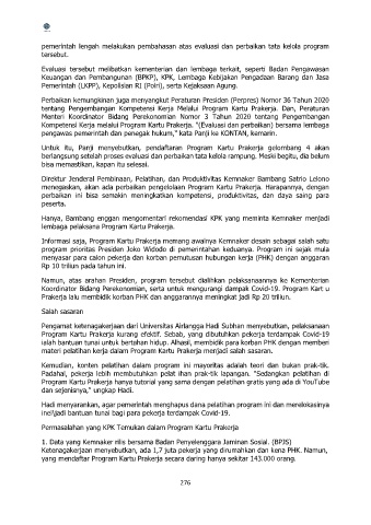 Kompetensi Kerja melalui Program Kartu Prakerja. "(Evaluasi dan perbaikan) bersama lembaga