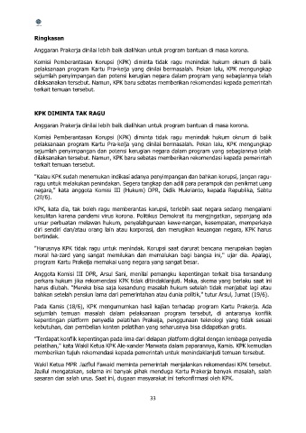 pelaksanaan program Kartu Pra-keija yang dinilai bermasalah. Pekan lalu, KPK mengungkap