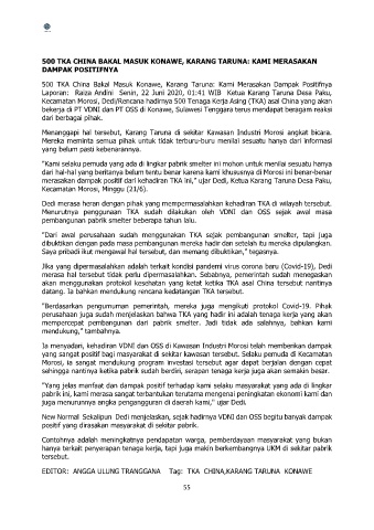 bekerja di PT VDNI dan PT OSS di Konawe, Sulawesi Tenggara terus mendapat beragam reaksi