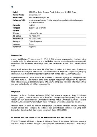 Judul 14 BEM se Sultra Sepakat Tolak Kedatangan 500 TKA China