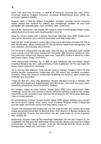 Asing (TKA) asal China di Kendari. 14 BEM itu di antaranya Universitas Halu Oleo (UHO),