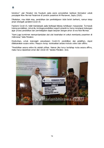 penyiapan New Normal Pesantren di pondok pesantren Al-Munawwir, Saptu (20/6).