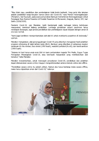 adalah pendidikan tetap berjalan namun aman dari Covid-19," kata Menteri Ketenagakerjaan