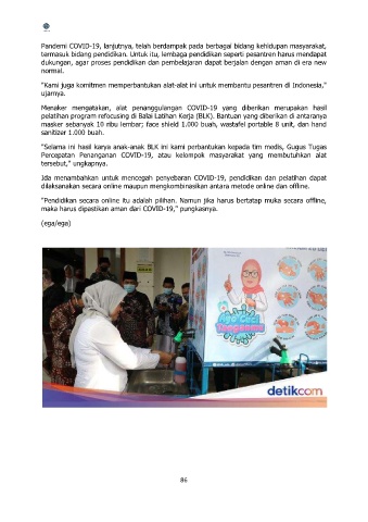 "Selama ini hasil karya anak-anak BLK ini kami perbantukan kepada tim medis, Gugus Tugas