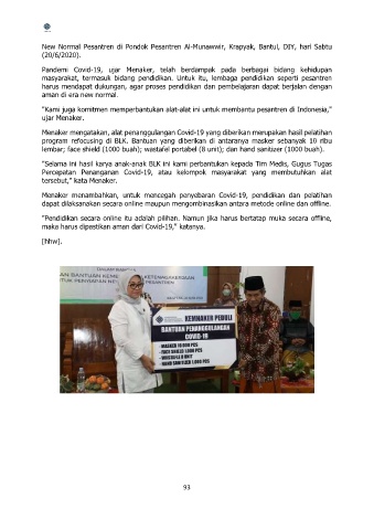 New Normal Pesantren di Pondok Pesantren Al-Munawwir, Krapyak, Bantul, DIY, hari Sabtu