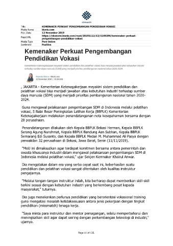 Title KEMENAKER PERKUAT PENGEMBANGAN PENDIDIKAN VOKASI