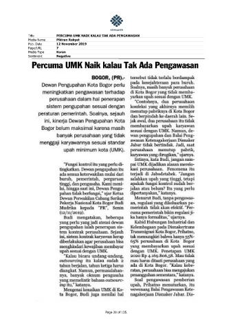 Title PERCUMA UMK NAIK KALAU TAK ADA PENGAWASAN Media Name Pikiran Rakyat Pub. Date 12 November 2019 Page/URL 7 Media Type Koran Sentiment Negative Page 28 of 135.