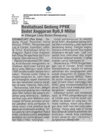 Title REVITALISASI GEDUNG PPKK SEDOT ANGGARAN RP6,9 MILIAR Media Name Pos Kota Pub. Date 07 Februari 2019 Page/URL 4 Media Type Koran Sentiment Positive Page 36 of 121.