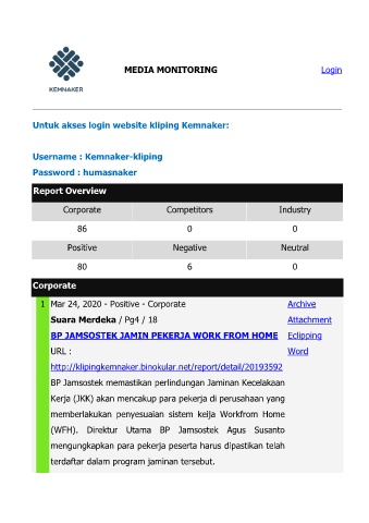 BP JAMSOSTEK JAMIN PEKERJA WORK FROM HOME Eclipping