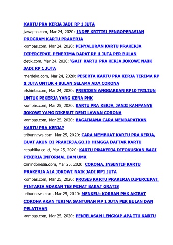 merdeka.com, Mar 24, 2020: PESERTA KARTU PRA KERJA TERIMA RP