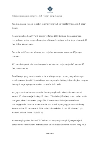 Indonesia yang jam kerjanya lebih rendah per pekannya.