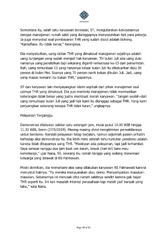 dengan manajemen rumah sakit yang dianggapnya menyepelekan hak para pekerja.