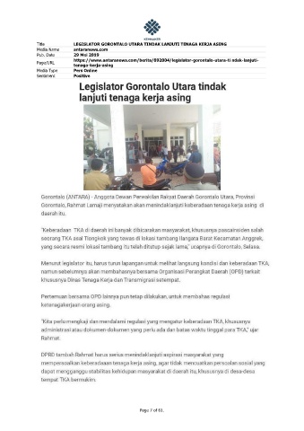 Title LEGISLATOR GORONTALO UTARA TINDAK LANJUTI TENAGA KERJA ASING