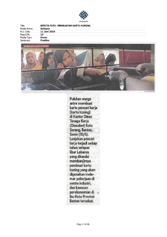 Title BERITA FOTO- PEMBUATAN KARTU KUNING Media Name Indopos Pub. Date 11 Juni 2019 Page/URL 13 Media Type Koran Sentiment Positive Page 2 of 46.