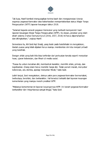 laporan keuangan Wajar Tanpa Pengecualian (WTP). Ke depan, prestasi yang telah
