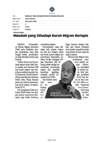 Title MASALAH YANG DIHADAPI BURUH MIGRAN BERLAPIS Media Name Koran Jakarta Pub. Date 28 Januari 2020 Page/URL 4 Media Type Koran Sentiment Positive Page 5 of 60.