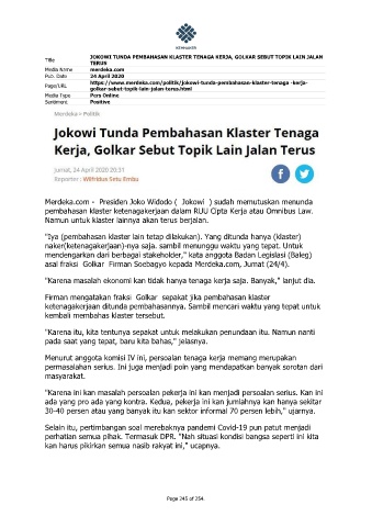 Title JOKOWI TUNDA PEMBAHASAN KLASTER TENAGA KERJA, GOLKAR SEBUT TOPIK LAIN JALAN