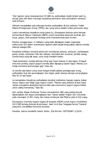 "Dari laporan yang mewawancarai 34 ABK itu, perbudakan masih terjadi saat ini,