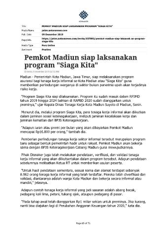 asuransi bagi tenaga kerja informal se-Kota Madiun atau "Siaga Kita" guna