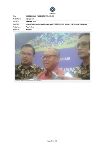 Title 20.000 KOBAN PHK DIBERI PELATIHAN Media Name krjogja.com Pub. Date 14 Maret 2019 Page/URL https://krjogja.com/web/news/read/93990/20_000_Koban_PHK_Diberi_Pelati han Media Type Pers Online Sentiment Positive Page 20 of 136.