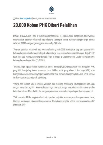 Page 22 - e-KLIPING KETENAGAKERJAAN 14 MARET 2019