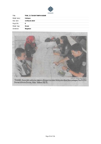 Title TKW, 22 TAHUN TANPA KABAR Media Name Indopos Pub. Date 14 Maret 2019 Page/URL 6 Media Type Koran Sentiment Negative . Page 29 of 136.