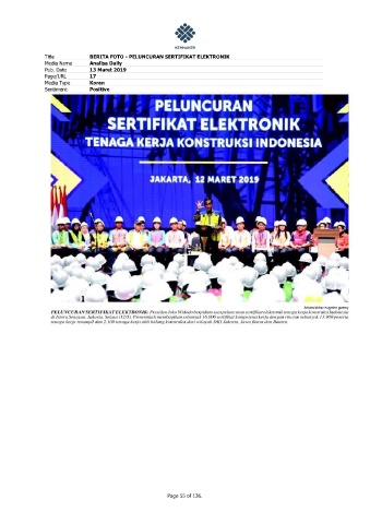 Title BERITA FOTO - PELUNCURAN SERTIFIKAT ELEKTRONIK Media Name Analisa Daily Pub. Date 13 Maret 2019 Page/URL 17 Media Type Koran Sentiment Positive Page 55 of 136.