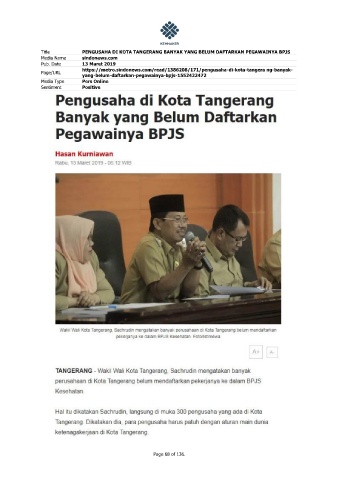Title PENGUSAHA DI KOTA TANGERANG BANYAK YANG BELUM DAFTARKAN PEGAWAINYA BPJS
