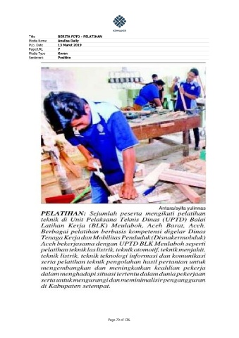 Title BERITA FOTO - PELATIHAN Media Name Analisa Daily Pub. Date 13 Maret 2019 Page/URL 7 Media Type Koran Sentiment Positive Page 70 of 136.