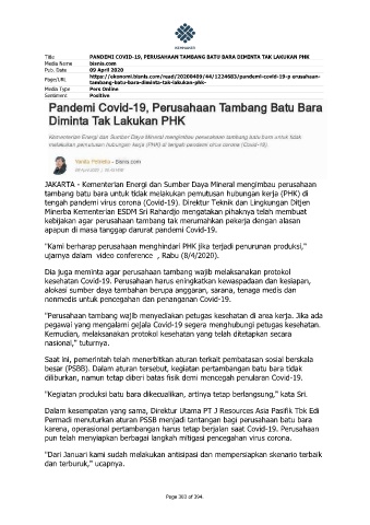 Title PANDEMI COVID-19, PERUSAHAAN TAMBANG BATU BARA DIMINTA TAK LAKUKAN PHK
