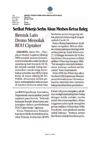Title SERIKAT PEKERJA SERBU AKUN MEDSOS KETUA BALEG Media Name Jawa Pos Pub. Date 09 April 2020 Page/URL 2 Media Type Koran Sentiment Negative Page 311 of 394.