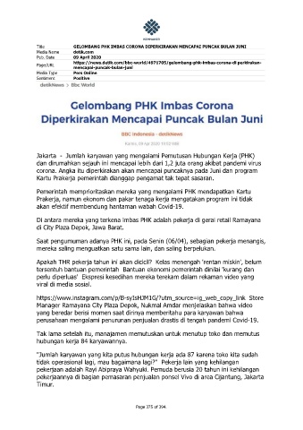 Title GELOMBANG PHK IMBAS CORONA DIPERKIRAKAN MENCAPAI PUNCAK BULAN JUNI