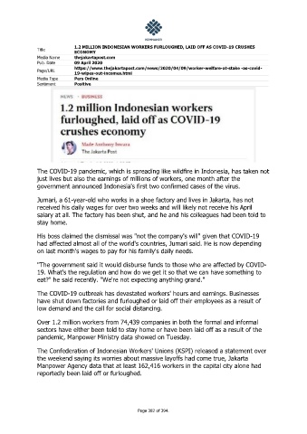 1.2 MILLION INDONESIAN WORKERS FURLOUGHED, LAID OFF AS COVID-19 CRUSHES
