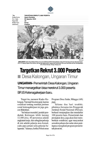 Title TARGETKAN REKRUT 3.000 PESERTA Media Name Suara Merdeka Pub. Date 05 Agustus 2019 Page/URL 23 Media Type Koran Sentiment Positive Page 28 of 78.