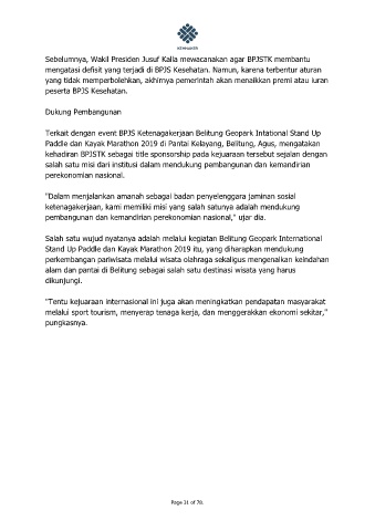 Terkait dengan event BPJS Ketenagakerjaan Belitung Geopark Intational Stand Up