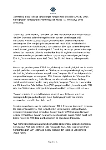 (Kemnaker) menjalin kerja sama dengan Amazon Web Services (AWS) RI untuk