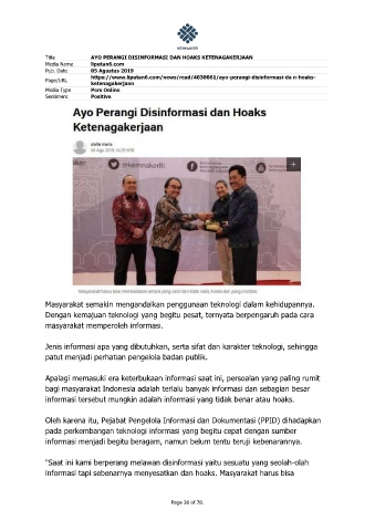 informasi tapi sebenarnya menyesatkan dan hoaks. Masyarakat harus bisa