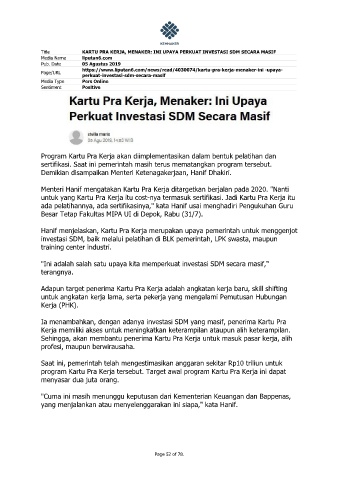 Title KARTU PRA KERJA, MENAKER: INI UPAYA PERKUAT INVESTASI SDM SECARA MASIF