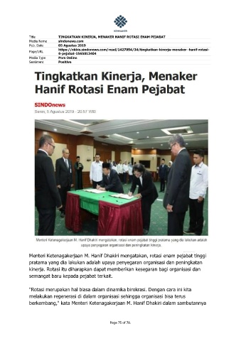 Title TINGKATKAN KINERJA, MENAKER HANIF ROTASI ENAM PEJABAT