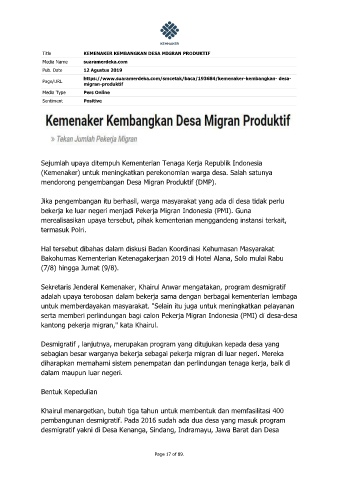 Title KEMENAKER KEMBANGKAN DESA MIGRAN PRODUKTIF