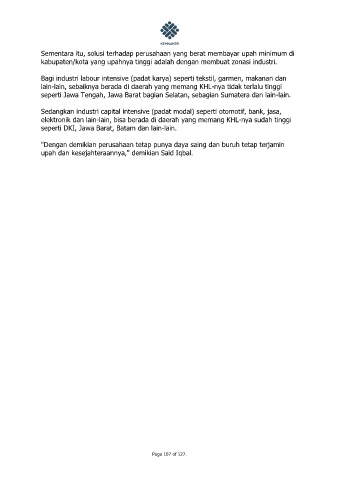Bagi industri labour intensive (padat karya) seperti tekstil, garmen, makanan dan