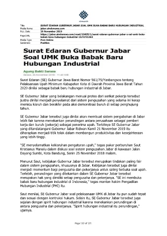 Title SURAT EDARAN GUBERNUR JABAR SOAL UMK BUKA BABAK BARU HUBUNGAN INDUSTRIAL