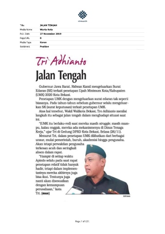 Title JALAN TENGAH Media Name Warta Kota Pub. Date 27 November 2019 Page/URL 8 Media Type Koran Sentiment Positive Page 7 of 127.